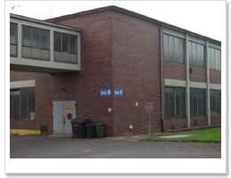 Massive Halle mit Stahlbetonbindern und ausgemauerten Wänden.